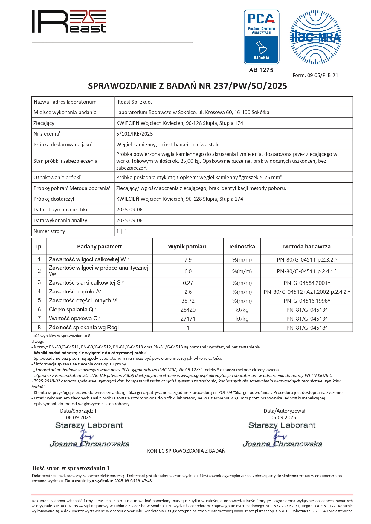 Naszym zdaniem najważniejszy parametr. Spiekalność określa tendencję do koksowania oraz łączenia się ze sobą wypalonych bryłek groszku. Ustawa o jakości paliw stałych dopuszcza do obrotu groszki o spiekalności nie wyższej niż 90. Jednak do użytku domowego zaleca się stosować groszki o spiekalnoci do 25. Generalna zasada jest taka, że im niższa spiekalność tym lepiej.